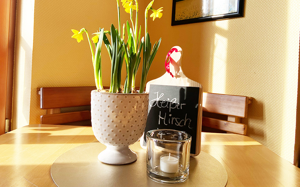 Wenn draußen der Herbstwind weht oder nach einer Winterwanderung die Kälte in die Knochen kriecht, erwartet Sie drinnen wohlige Wärme. In unserer gemütlichen Stube mit Holzdekor, Kerzenschein und herzlicher Gastfreundschaft schmeckt eine heiße Schokolade, ein würziger Tee oder ein kräftiger Kaffee gleich doppelt so gut. Dazu passen unsere herzhaften Brotzeiten, die wir mit frischen Produkten vom eigenen Hof und aus der Region zubereiten – rustikal, ehrlich und einfach lecker.