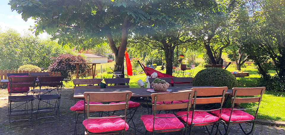 Im Sommer ist unser Café ein Ort zum Durchatmen und Verweilen. Nehmen Sie draußen Platz, genießen Sie den Blick über Felder und Wiesen, spüren Sie die Sonne im Gesicht und das Gefühl von Freiheit. Vielleicht mit einem Stück frischem Obstkuchen und einer kalten Latte – das Leben darf hier ruhig ein bisschen langsamer laufen.